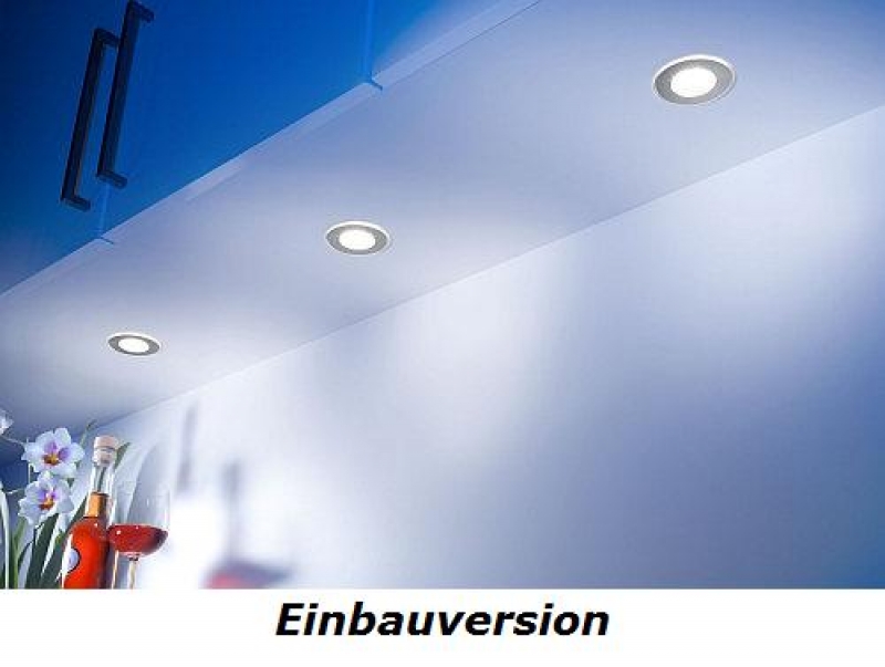 • Diese Leuchte kann entweder als Einbauleuchte oder als Aufbauleuchte eingesetzt werden. Der Aufbauring ist grundsätzlich im Lieferumfang enthalten, ebenso wie der Kabelkanal in der Länge 100 mm.