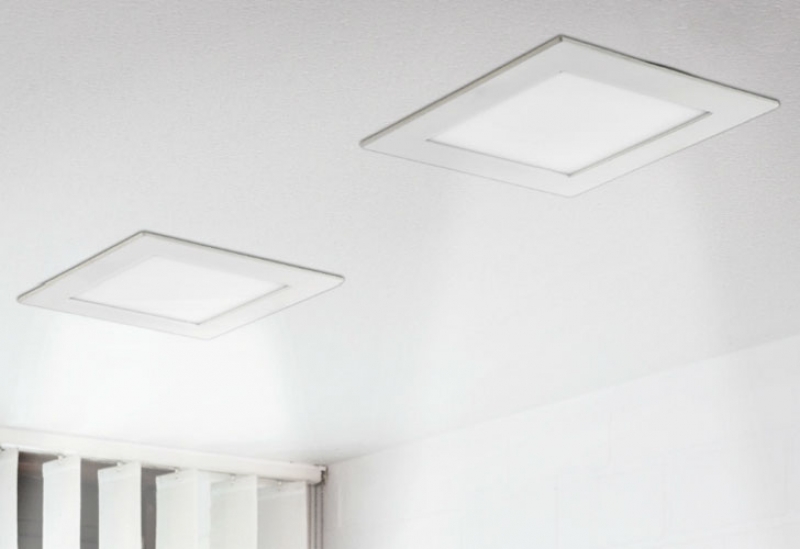 • Formschöne Deckeneinbauleuchte in eckiger Form. Besonders flache Ausführung für optimale flächige Ausleuchtung. Hochwertiges Aluminiumgehäuse in weißer Optik. Der vormontierte Einzelkonverter ermöglicht den direkten Anschluss an 230 V. Die Leuchten werden mit zwei kräftigen Federn gehalten.