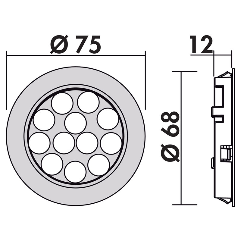 • Bohr-Ø 68 mm, Einbautiefe 12 mm