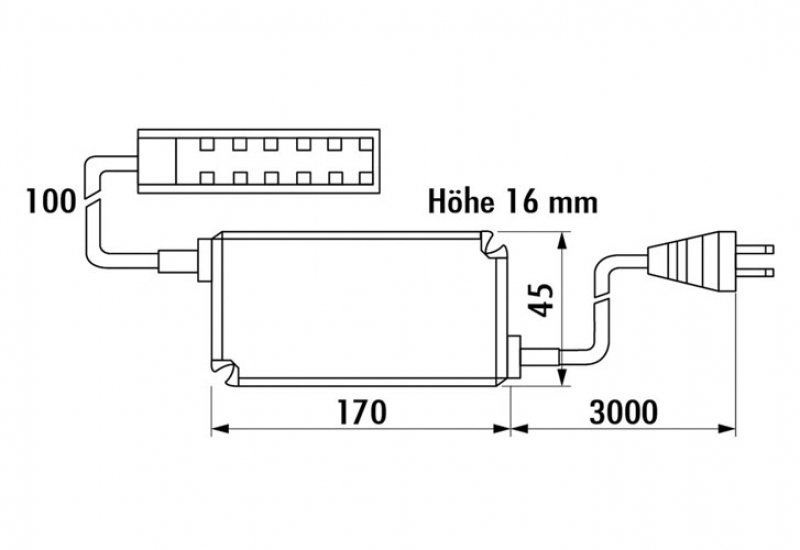 - Leitungslänge zwischen Trafo und Schalter jeweils 2000 mm