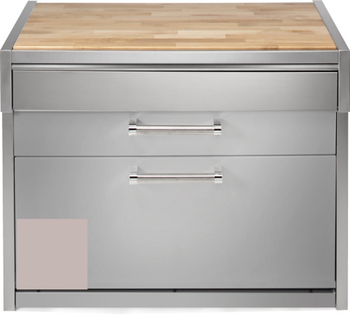 - Edelstahlarbeitsplatte mit Holzbrett
