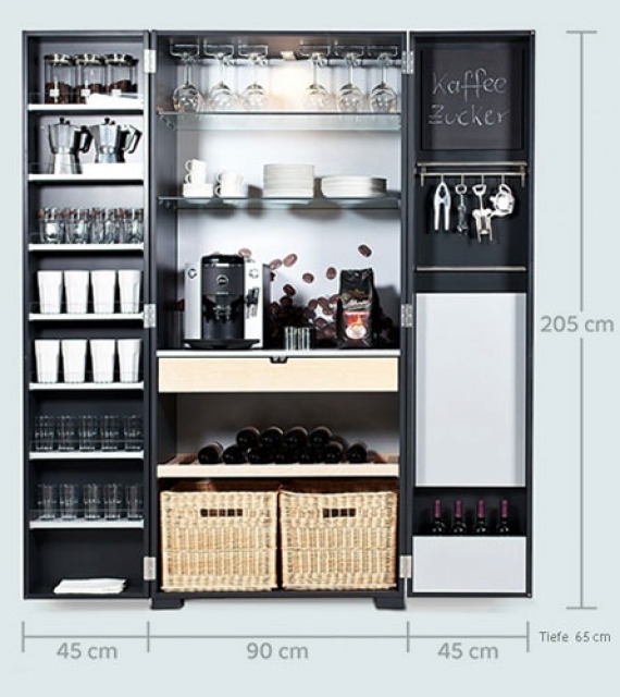 Was ist der Liv Cube eigentlich? Schrank, Kaffeebar oder Partymöbel? Aufbewahrung, purer Lifestyle oder die Snackbar die geschlossen und unauffällig im Konferenzraum steht wenn sie gerade nicht benötigt wird? Eigentlich ist er alles auf einmal und macht auch noch Spaß dabei. Sorgfältig ausgesuchte Materialien, strapazierfähige Innenflächen, matt verchromtes Funktionszubehör und hochstabile Türscharniere gehören hier zur Grundausstattung. Noch viel mehr Spaß macht der Liv-Cube mit den vielseitigen Komfortpaketen wie Licht, Weinregal, Natur und vielem mehr. Lassen Sie sich von unserer ausführlichen und detaillierten Beschreibung weiter unten inspirieren.