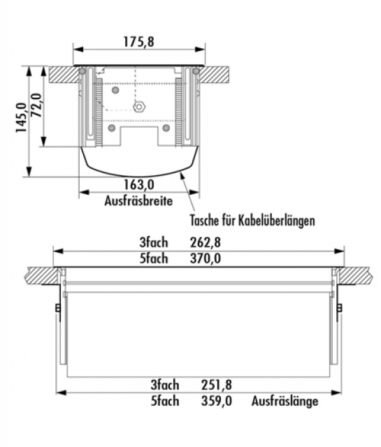 • Steckdosenelement 3-fach zum Einlassen in die Arbeitsplatte