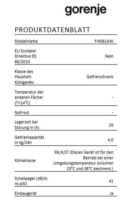 Gorenje FI 4061 AW, Einbau-Gefrierbox, Schlepptür, EEK: A+, mit 5 Jahren Garantie!products_warranty_conditions
