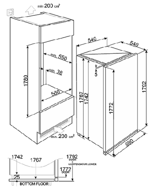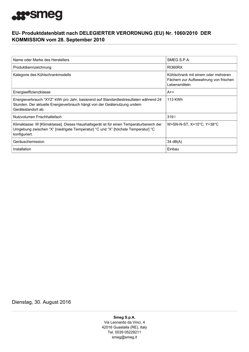 SMEG RI360RX Einbaukühlschrank, Festtürtechnik, EEK: A++, mit 5 Jahren Garantie!products_warranty_conditions