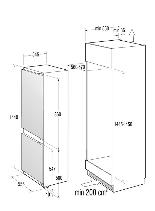 • Einbaumaß (HxBxT in mm): 1445-1450x560-570x560