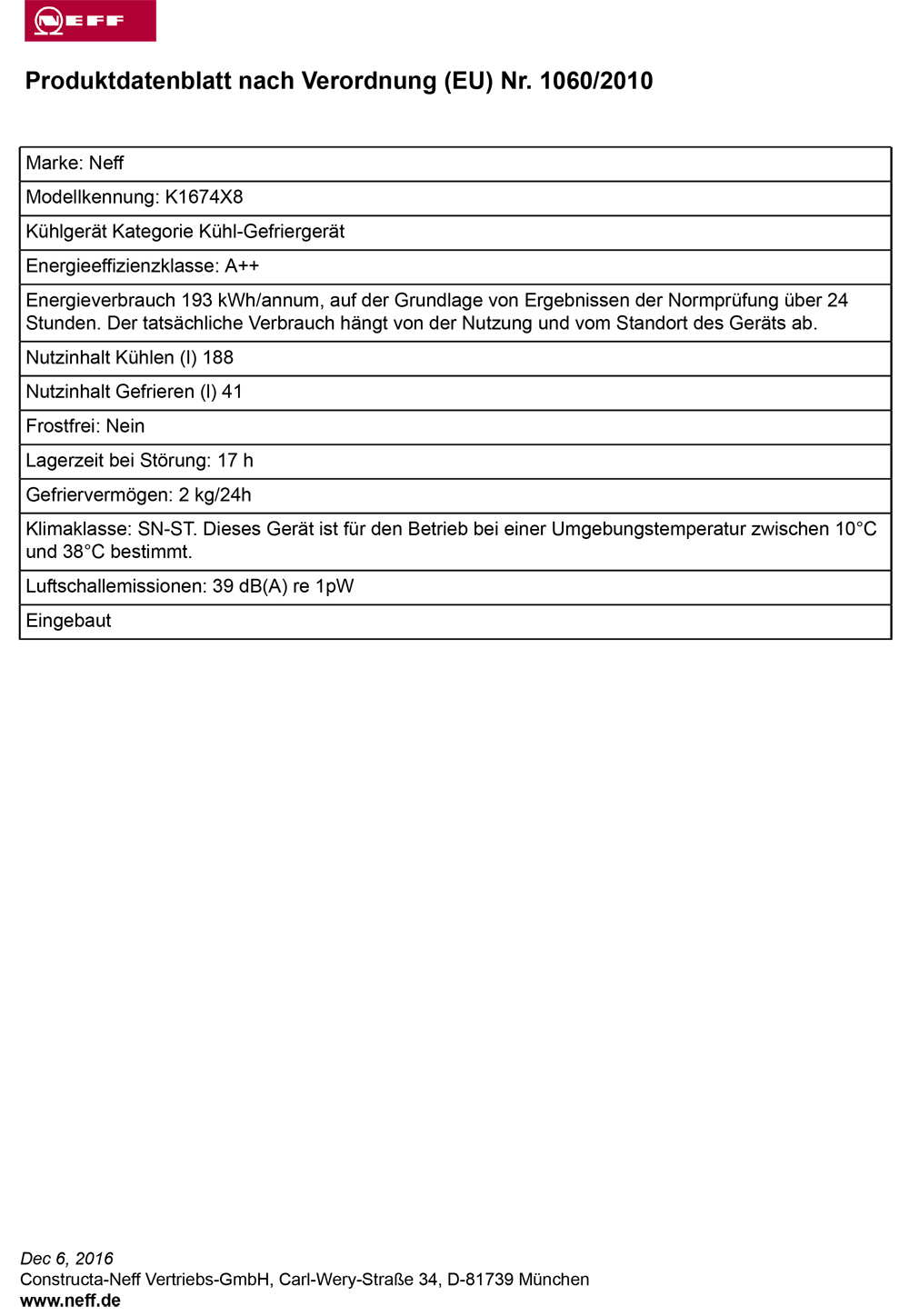 Neff KT 534 A2 / K1674X8, integrierbare Kühl-Gefrierkombination, EEK: A++, mit 5 Jahren Garantie!products_warranty_conditions
