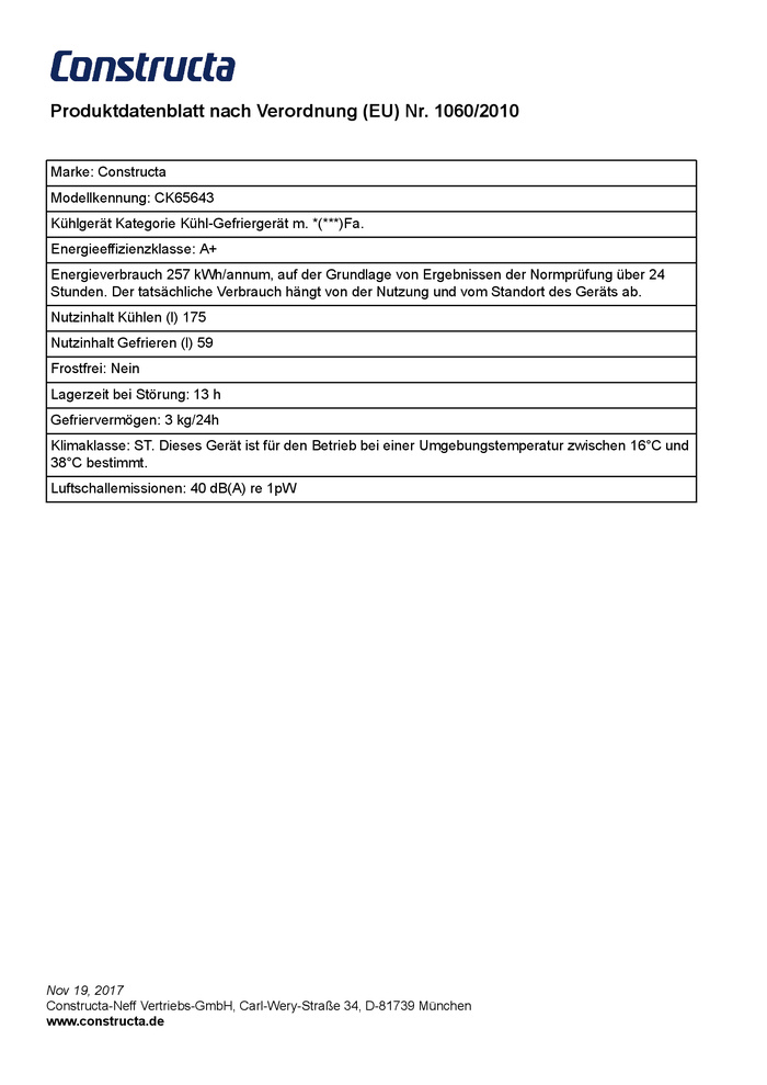Energieverbrauch: 257 kWh/Jahr