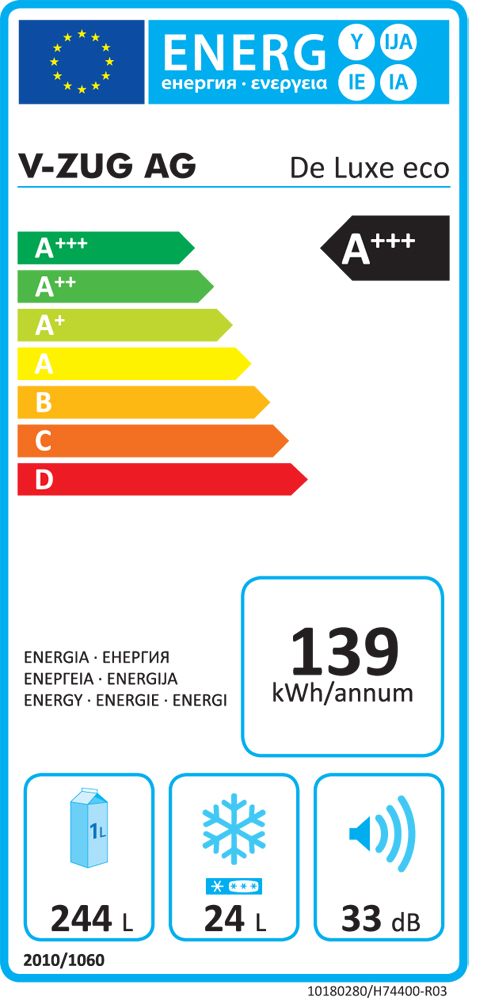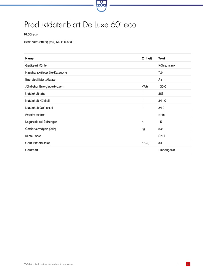 VZug De-Luxe 60 I eco, Einbau-Kühl-Gefrierschrank, EK1212-EE, 5106060015