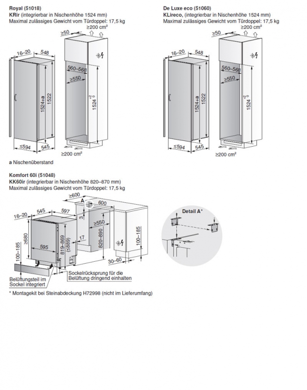 Nischenbreite: 550 mm