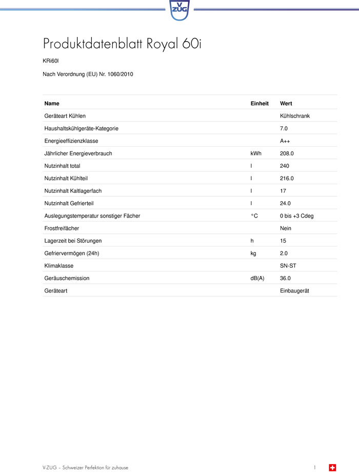 VZug Royal 60 I, Einbau-Kühl-Gefrierschrank, EK1213MFL-e, 5101860015