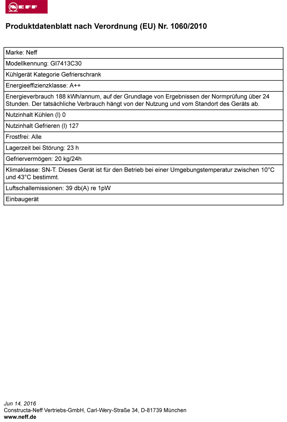 Neff G 446 A2 / GI7413C30, vollintegrierbarer Gefrierschrank, EEK: A++, mit 5 Jahren Garantie!products_warranty_conditions