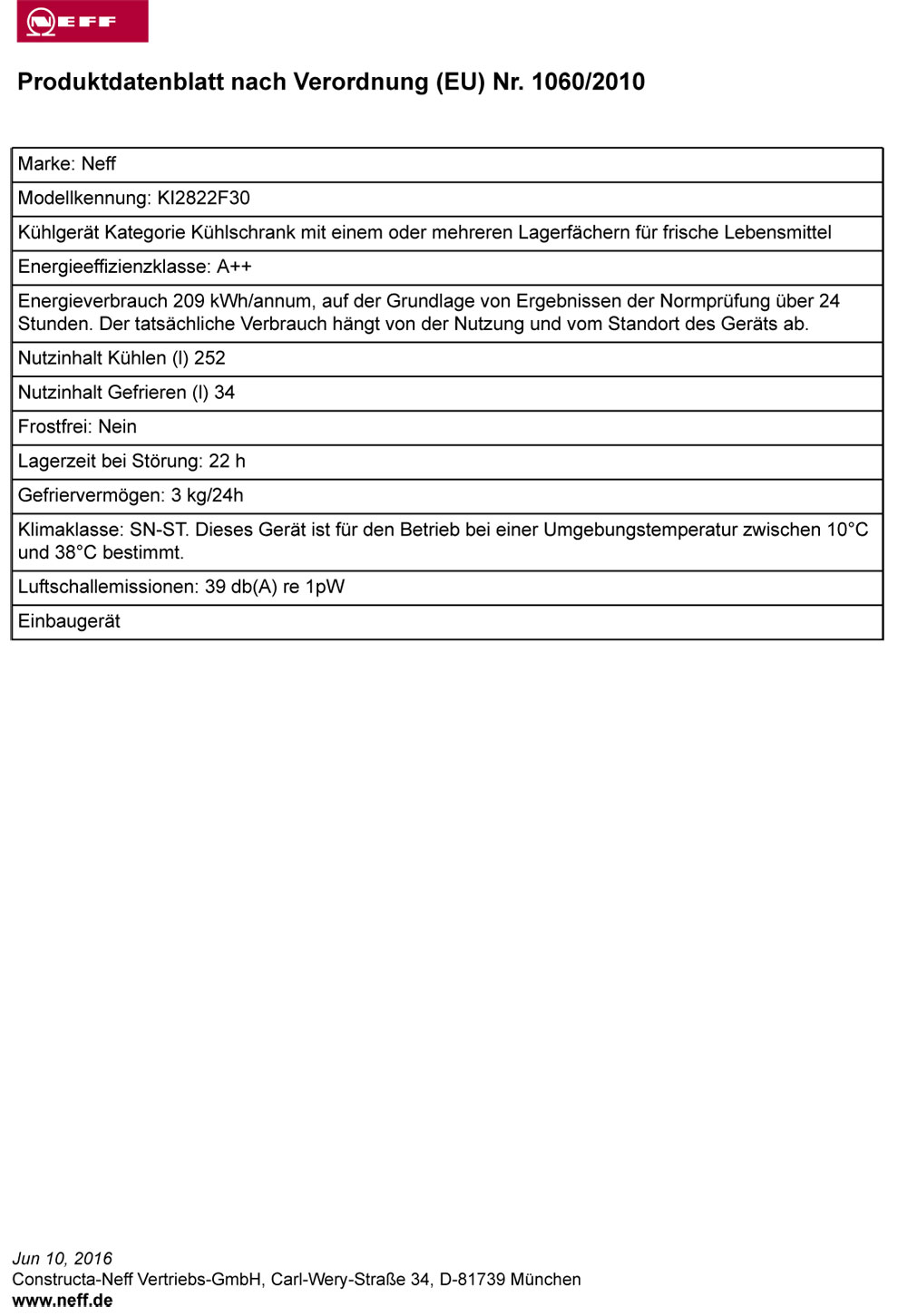 Neff K 825 A2 / KI2822F30, vollintegrierbare Kühl-Gefrierkombination, EEK: A++, mit 5 Jahren Garantie!products_warranty_conditions