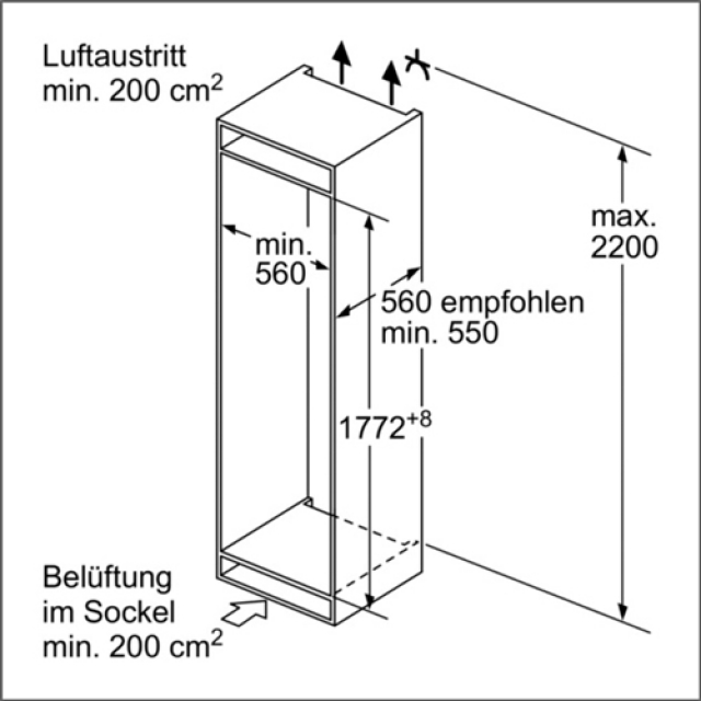 • Nischenmaße (H x B x T): 177,5 cm x 56,0 cm x 55,0 cm