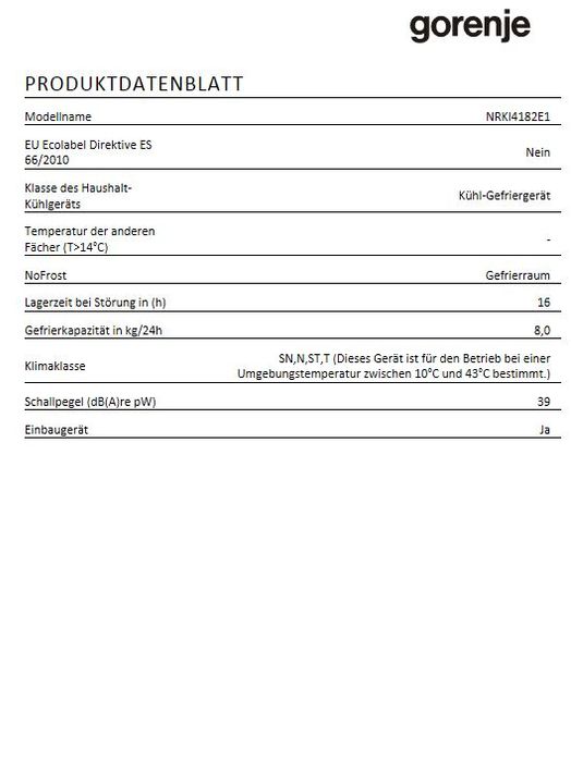 Gorenje NRKI 4182 E1, Einbau-Kühl-Gefrier-Kombi, EEK: A++, mit 5 Jahren Garantie!products_warranty_conditions