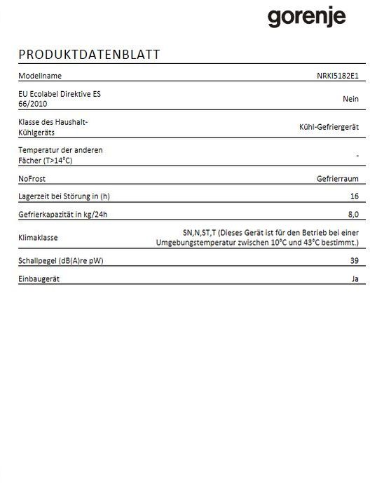 Gorenje NRKI 5182 A1, Einbau-Kühl-Gefrier-Kombi, EEK: A++, mit 5 Jahren Garantie!products_warranty_conditions