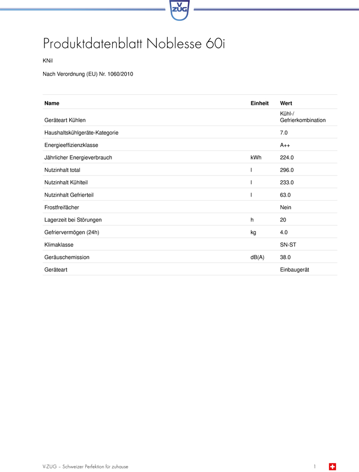 VZug Noblesse 60 I, Einbau-Kühl-Gefrierschrank, EK14232TF-EA, 5104660015