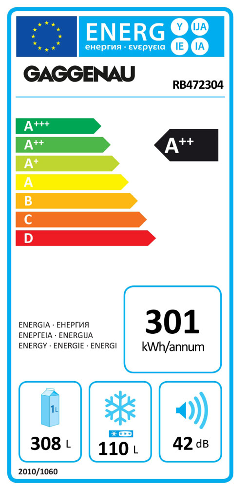 - Energieeffizienzklasse A++ auf einer Skala der Effizienzklassen von A+++ bis D