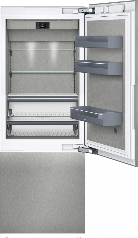 Gaggenau Vario Kühl-Gefrier-Kombination Serie 400, Edelstahl-Innenraum mit Alu-Elementen, Led-Spots, Nutzinhalt 418 Liter, integrierter Eisbereiter mit Wasseranschluß, voll ausziehbare Gefrierschublade, RB 472304