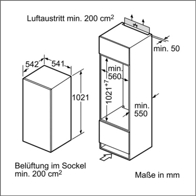 • Nischenmaße (H x B x T): 102,5 cm x 56,0 cm x 55,0 cm