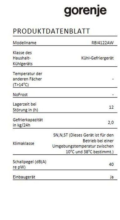 Gorenje RBI 4122 AW, Einbau-Kühlschrank, Schlepptür, EEK: A++, mit 5 Jahren Garantie!products_warranty_conditions