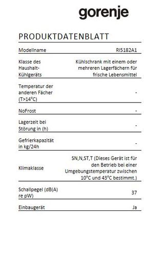 Gorenje RI 5182 A1, Einbau-Kühlschrank, Festtür, EEK: A++, mit 5 Jahren Garantie!products_warranty_conditions
