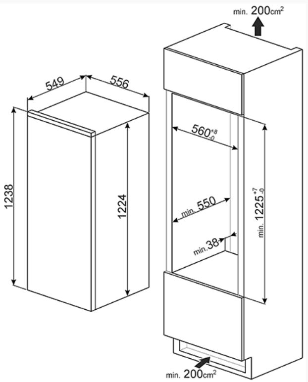 Der SMEG SD7205SLD2P1 ist ein Einbaukühlschrank mit einer Nischenhöhe von 122 cm und mit einem Nutzinhalt von 202 Litern. Er verfügt über einem LCD-Display und einer Festtürentechnik.