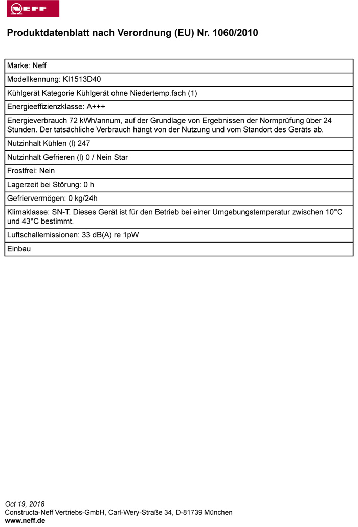 Neff K536A3 / KI1513D40, vollintegrierbarer Kühlautomat, EEK: A+++, mit 5 Jahren Garantie!products_warranty_conditions