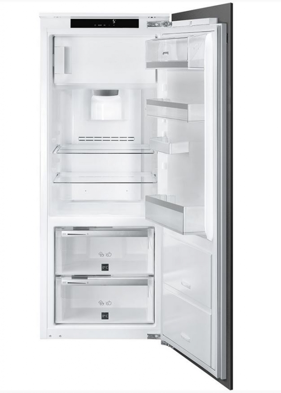 Der SMEG S7C148DF2P1 ist ein Einbaukühlschrank mit einer Nischenhöhe von 140 cm und mit einem Nutzinhalt von 174 Litern. Er verfügt über einem LCD-Display und einer Festtürentechnik.
