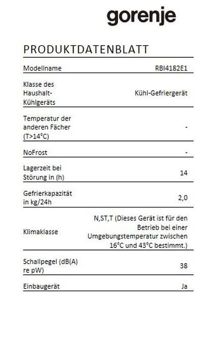 Gorenje RBI 4182 E1, Einbau-Kühlschrank, Schlepptür, EEK: A++