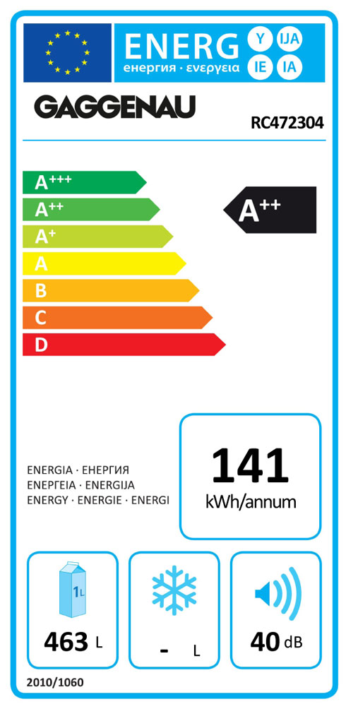 - Energieeffizienzklasse A++ auf einer Skala der Effizienzklassen von A+++ bis D