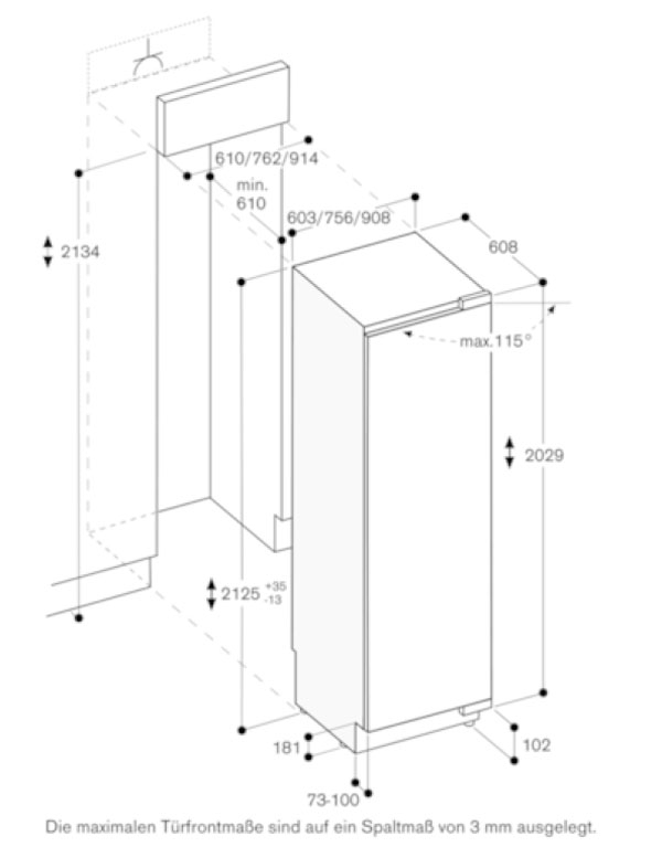 - Max. zulässiges Türfrontgewicht: 24 kg