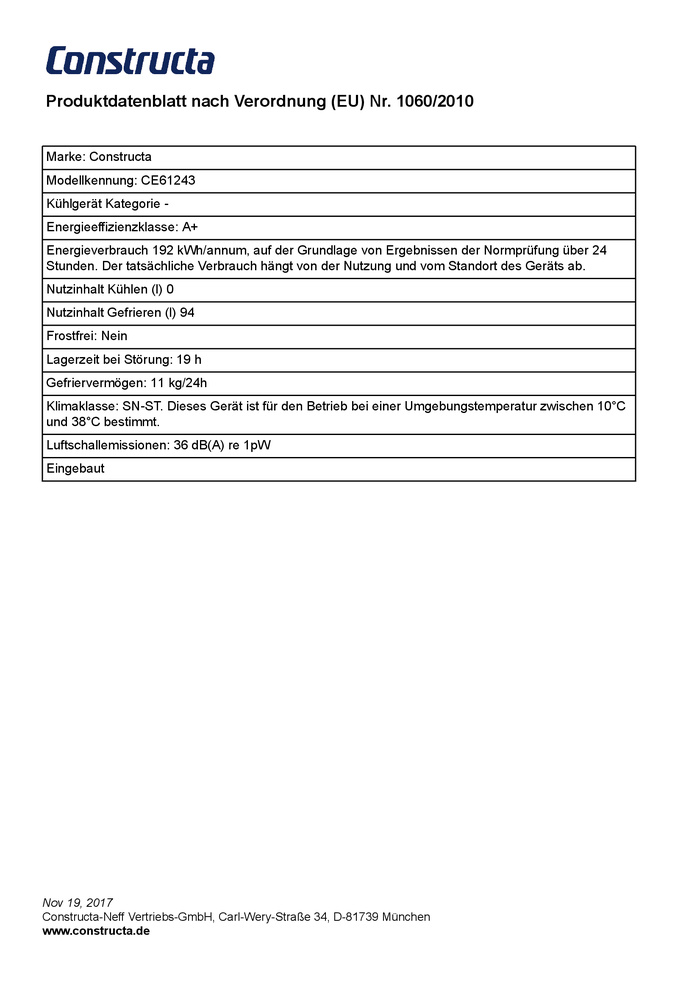 Constructa CE61243, Kühlschrank integrierbar, 88 cm hoch