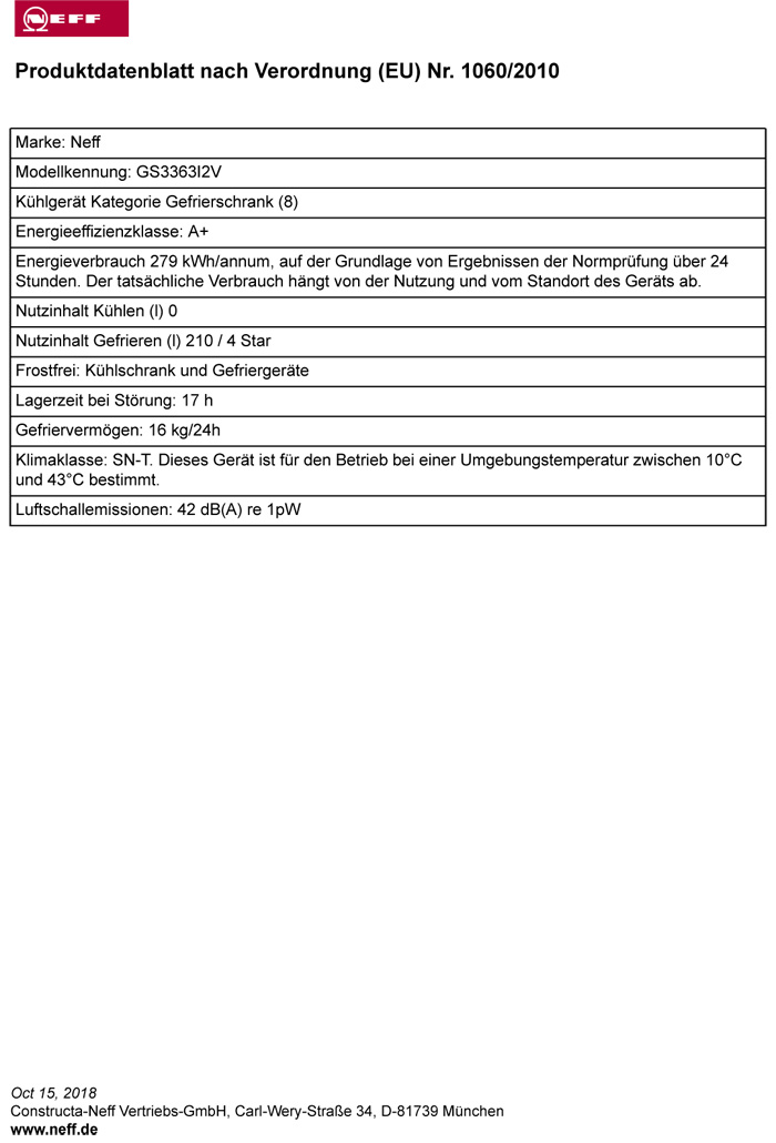 Neff GSF888A1 / GS3363I2V, Stand-Gefrierschrank, EEK: A+, mit 5 Jahren Garantie!products_warranty_conditions