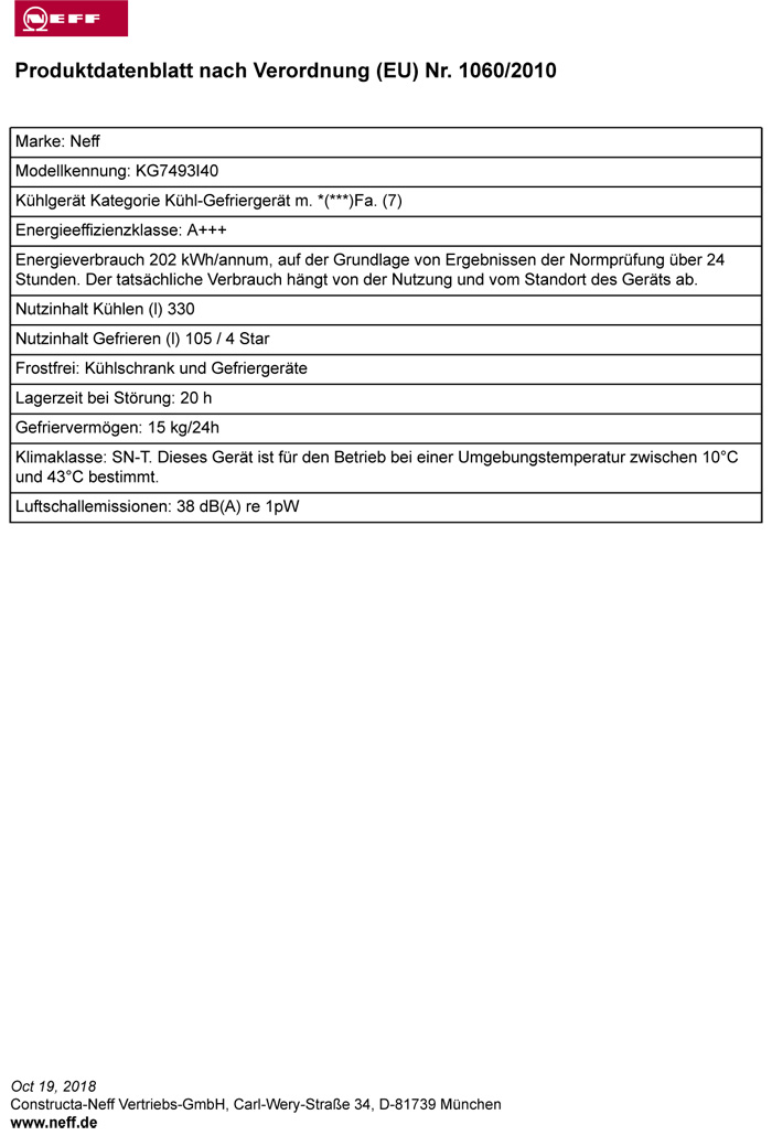 Neff KSF977A3 / KG7493I40, Stand-Kühl-Gefrierkombination, EEK: A+++, mit 5 Jahren Garantie!products_warranty_conditions