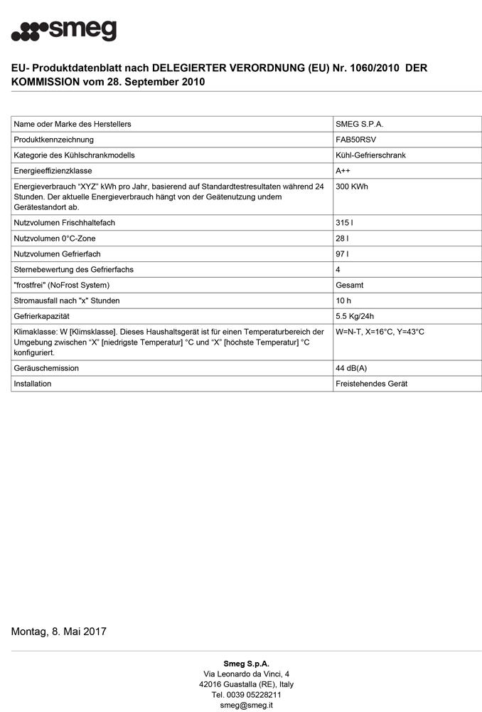 SMEG FAB50RSV Kühl-Gefrier-Kombination, Polarsilber, Rechtsanschlag, EEK: A++, mit 5 Jahren Garantie!products_warranty_conditions