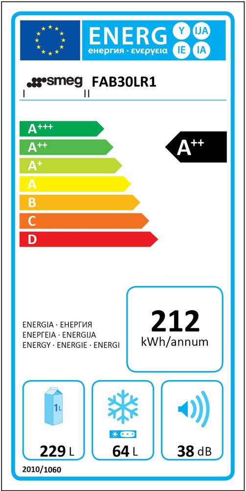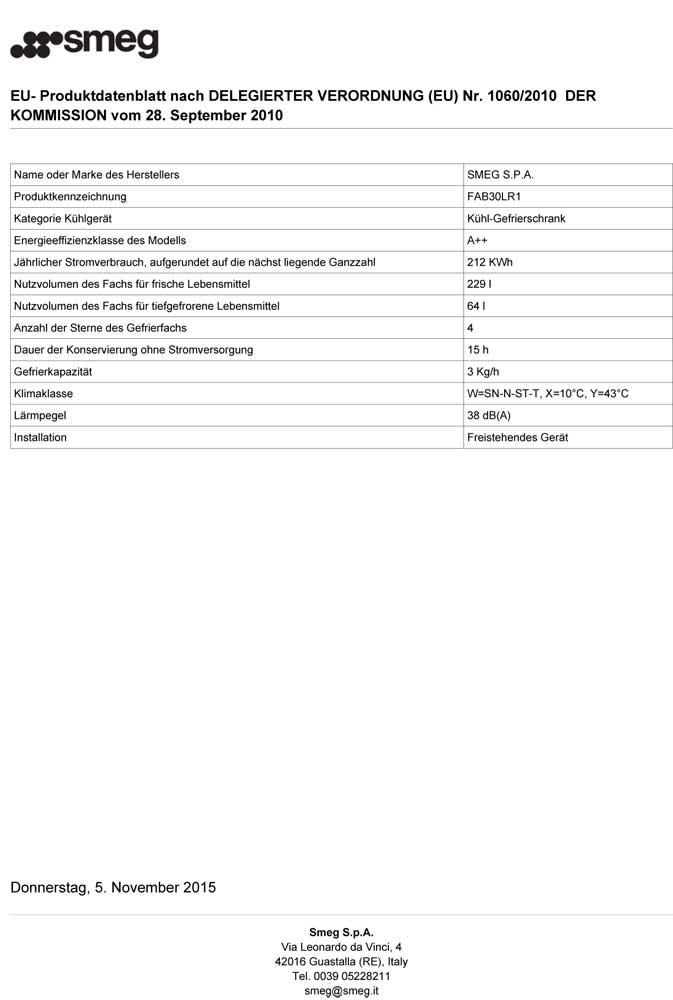 Technische Daten des Smeg Stand-Kühl-Gefrier-Schrank FAB3 0LR1: