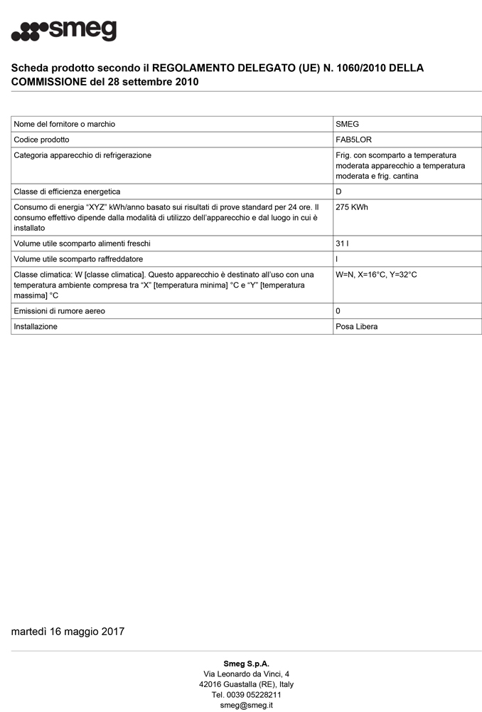 SMEG FAB5LOR Minibar Stand-Kühlschrank, 40 cm, Orange, Linksanschlag, Absorber-Kühlsystem, EEK: Dproducts_warranty_conditions