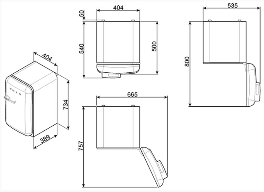 • Tiefe inkl. Türgriff und Wandabstand : 540 mm