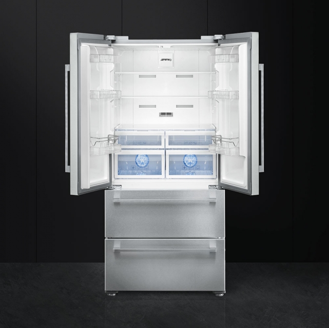 SMEG FQ 55 FX2PE  Doppeltür-Kühl-Gefrierkombination, 84cm, Edelstahl, 100 % NO FROST, Active Fresh Blue Light, LED-Soft Touch Display Intern, EEK A++, mit 5 Jahren Garantie!
