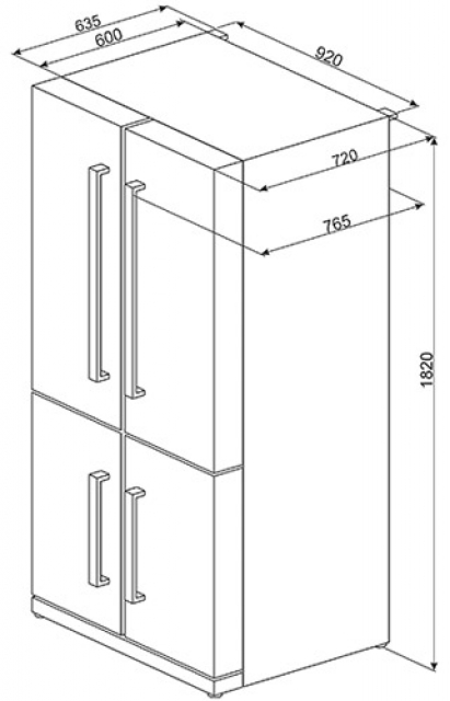 - Gerätemaße: H 1820 x B 920 x T 720 mm