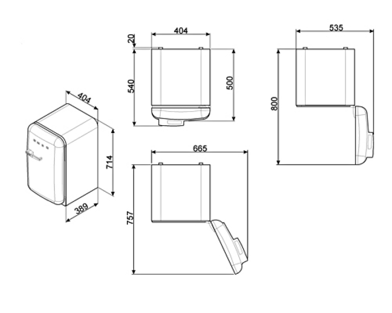 SMEGFAB5RBL Standkühlschrank Minibar, Schwarz, Rechtsanschlag, EEK: D, mit 5 Jahren Garantie!