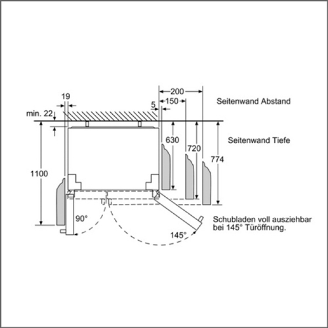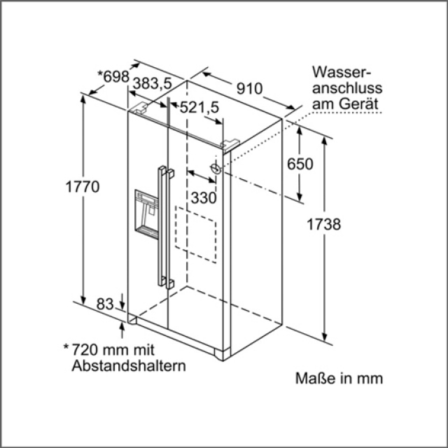 • Gerätemaße ( H x B x T): 177,0 cm x 91,0 cm x 72,0 cm