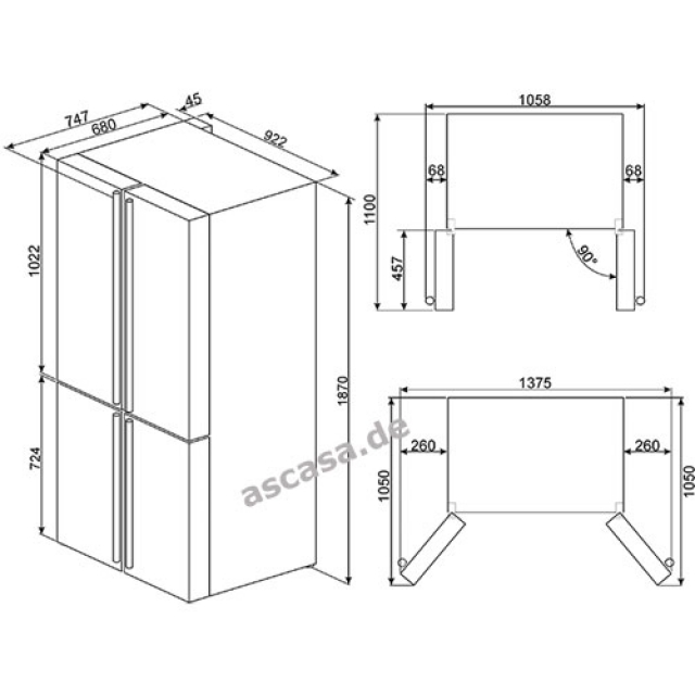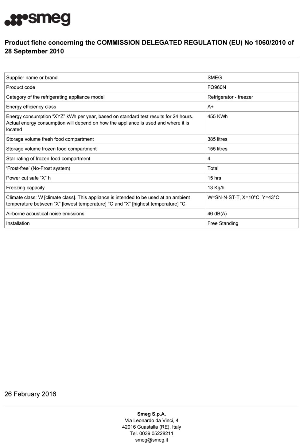 Technische Daten der Smeg Kühl-Gefrier-Side By Side Kombi FQ960 N: