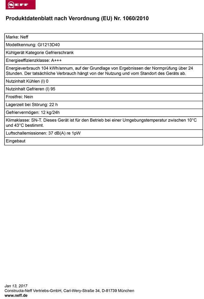 Neff G 246 A3 / GI1213D40, vollintegrierbarer Gefrierschrank, EEK: A+++, mit 5 Jahren Garantie!products_warranty_conditions