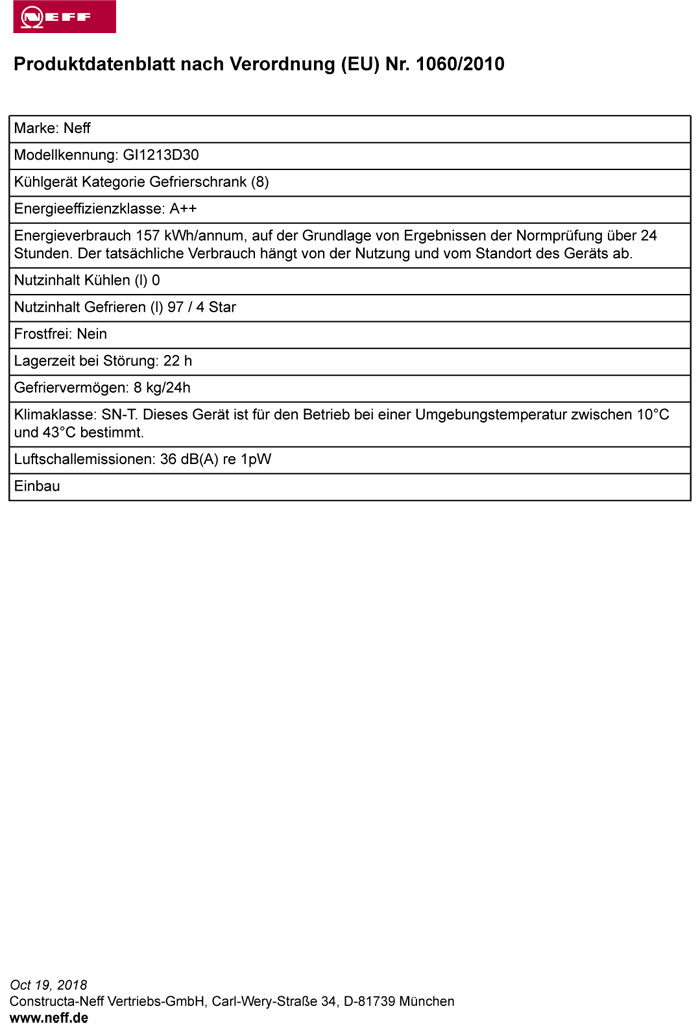 Neff G246A2 / GI1213D30, vollintegrierbarer Gefrierschrank, EEK: A++, mit 5 Jahren Garantie!products_warranty_conditions
