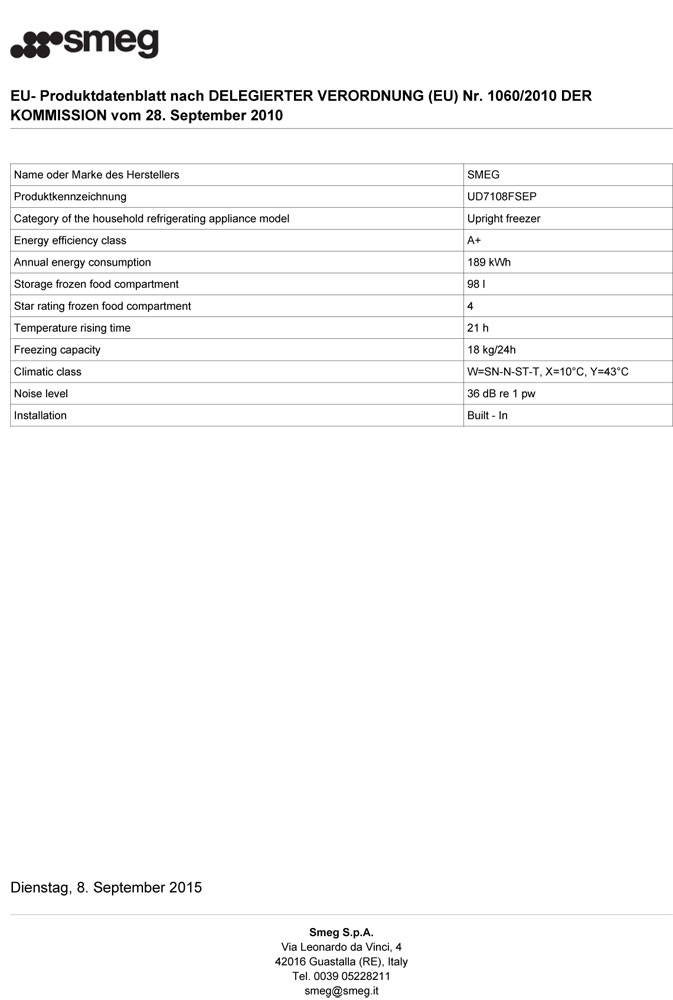 Technische Daten des Smeg Unterbau-Gefrierschrank UD71 08FSEP: