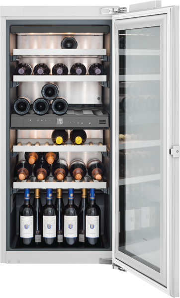 - Bei Kombination des Weinklimaschrankes mit anderen Kältegeräten als einem zweiten Weinklimaschrank, müssen diese eine Seitenwandheizung haben, um Kondensation zu vermeiden. Ohne eine Seitenwandheizung muss ein Mindestabstand von 150 mm zwischen den Geräten eingehalten werden