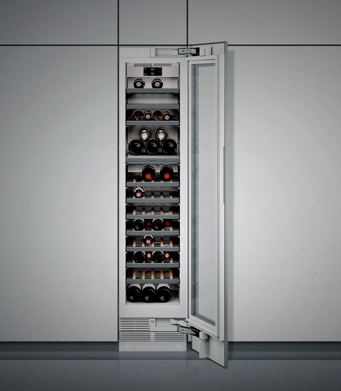 Gaggenau Vario Wein-Klimaschrank Serie 400, voll integrierbar, Edelstahl-Innenraum, Steuerung der Luftfeuchtigkeit, Kapazität 70 Flaschen, getrennt steuerbare Klimazonen, LED-Spots, RW 414304