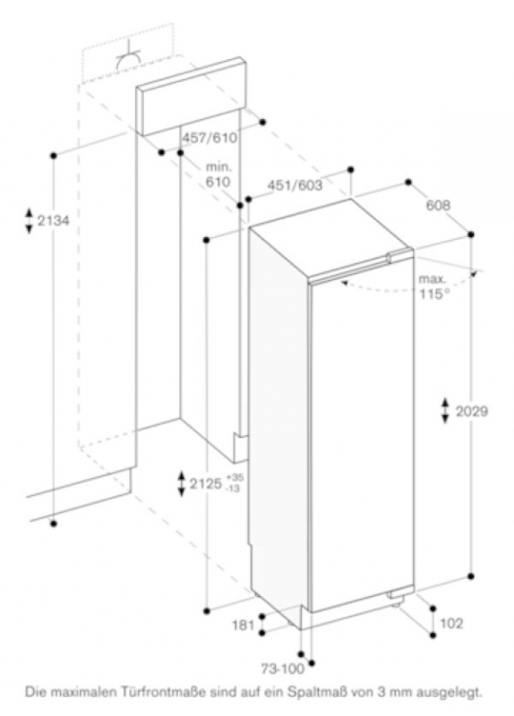 - Max. zulässiges Türfrontgewicht 76 kg#